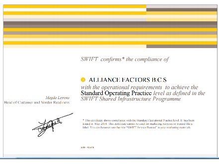 Получен сертификат SWIFT на уровень Standard Operational Practice.